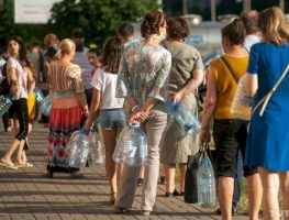 У многіх раёнах горада няма ні гарачай, ні халоднай, у іншых — яна з’яўляецца на некалькі гадзін у дзень. Тым часам гараджане кажуць, што з бутыляванай вадой у крамах ужо таксама ёсць праблемы — месцамі можна купіць толькі мінеральную ваду.