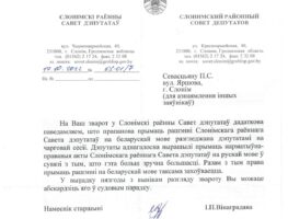 Жыхары Слоніма звярнуліся з лістом у Слонімскі раённы Савет дэпутатаў з прапановай, каб яны прымалі рашэнні не толькі на рускай мове, але і на беларускай.
