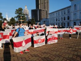 Амаль паўсотні беларусаў, што апынуліся ў сталіцы Аджарыі Батумі, выйшлі 24 кастрычніка на акцыю салідарнасці ў цэнтры гораду.