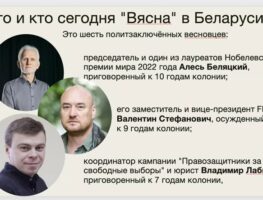 Праваабарончы цэнтар «Вясна» заклікае сёння выказаць салідарнасць з усімі палітвязнямі Беларусі, прыцягнуць увагу беларускага і міжнароднага грамадства да іх праблемаў і чарговы раз запатрабаваць ад уладаў вызвалення ўсіх палітзняволеных.