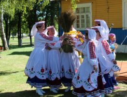 Штогод ушаноўваюць лён культасветработнікі вёскі Міжэвічы Слонімскага раёна. Вось і сёлета яны парадавалі не толькі вяскоўцаў, але і гасцей свята “Блакіт нябёсаў”.