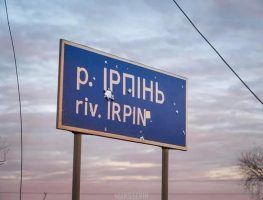 Карціна прысвечана вайне ва Украіне і адлюстроўвае наступствы жорскіх падзей у Ірпені – невялічкім горадзе пад Кіевам.