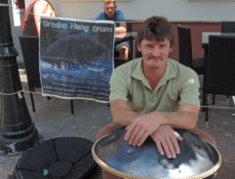 Гарадзенскі вулічны музыка Аляксандр Зімін стварыў на пляцоўцы МолаМола кампанію пад назваю «Grodno Hang Drum».