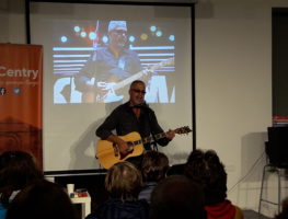 Лідар рок-гурта "Крама" правёў творчую вечарыну ў Гародні, па запрашэнні ўласнікаў "Цэнтра гарадскога жыцця", якія гэтай сустрэчай распачалі новы сезон.