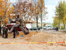 У Стоўпцах пачалі ўсталёўваць помнік Якубу Коласу