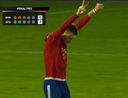 33-гадовы беларускі нападнік малдаўскага клуба Раман Волкаў пасля рэалізаванага пенальці паказаў кулак і вікторыю.