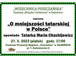 Мерапрыемства адбудзецца 27 кастрычніка ў Цэнтры прамоцыі рэгіёна «Чарлёнка» у Гайнаўцы.