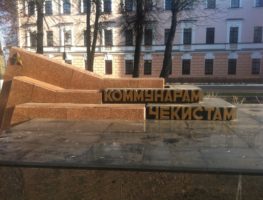 Адзін з самых цікавых помнікаў чэкістам - гэта агульная магіла ахвяраў Стракапытаўскага мяцежа, які адбыўся ў Гомелі ў сакавіку 1919 года.